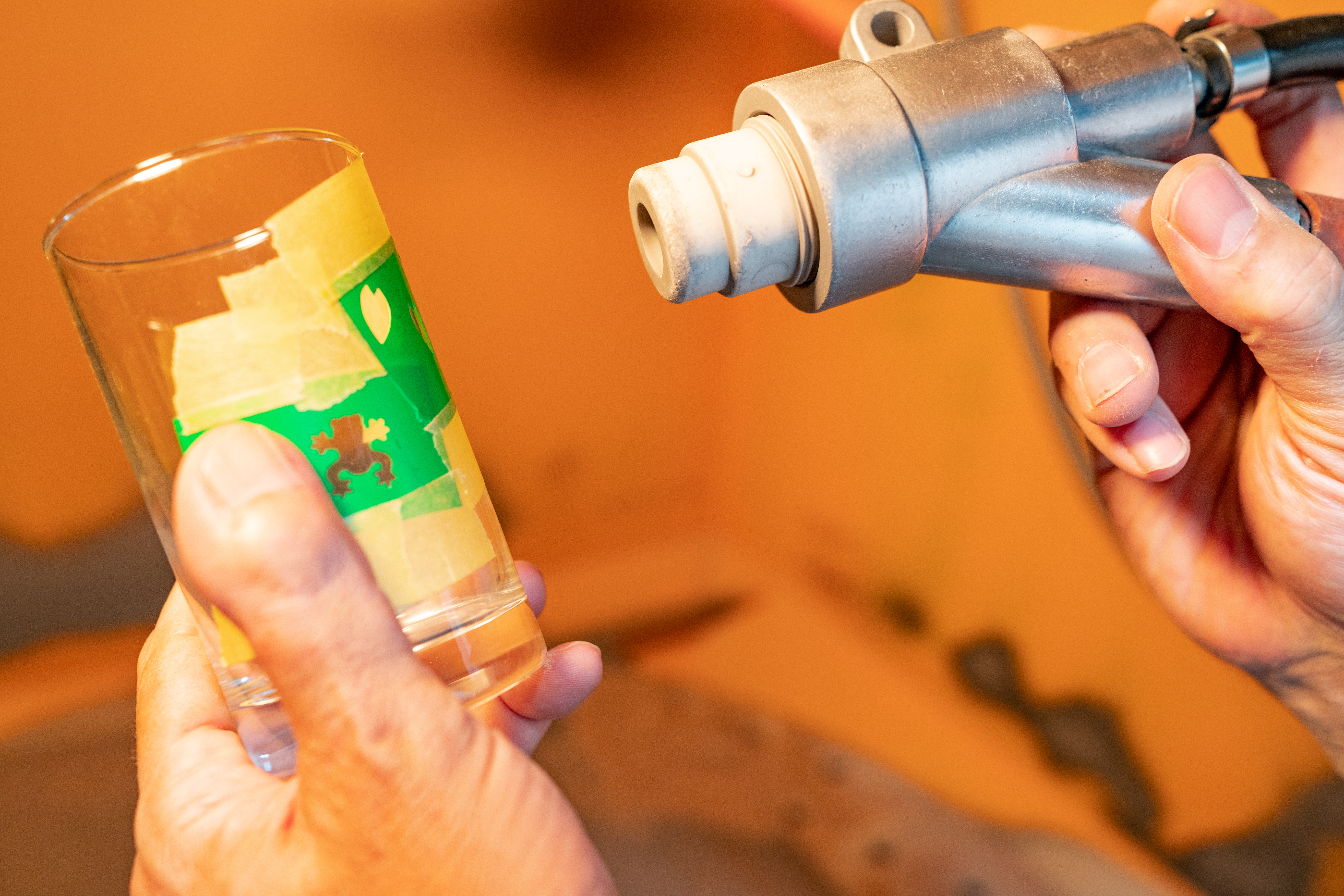 カットやサンドブラストと比べたグラヴィールの特色は、手先を細かく柔らかく使って直接絵を描くようにガラスを研削していくところでしょう。また、彫ること自体の難しさにも定評があり、実際に習った学生からは最も難しかったという声も聞きます。初めてグラヴィールをやってみると、銅盤がいったいガラスのどこに当たっているのか、ちゃんと削れているのか、なかなかわからないのです。逆に言えば、やり続けて慣れていく達成感のある、奥深い技法です!削って、失敗して、体で覚えましょう!