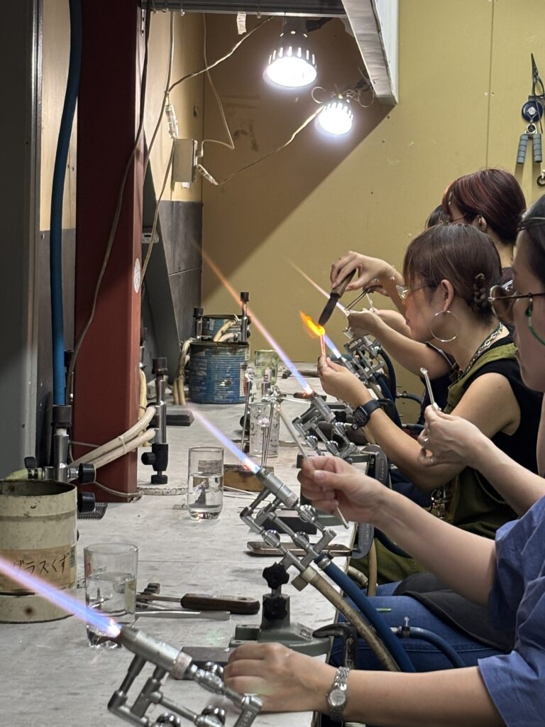 お待ちかねのガラス制作体験!今回は「酸素バーナー体験」を実施しました。