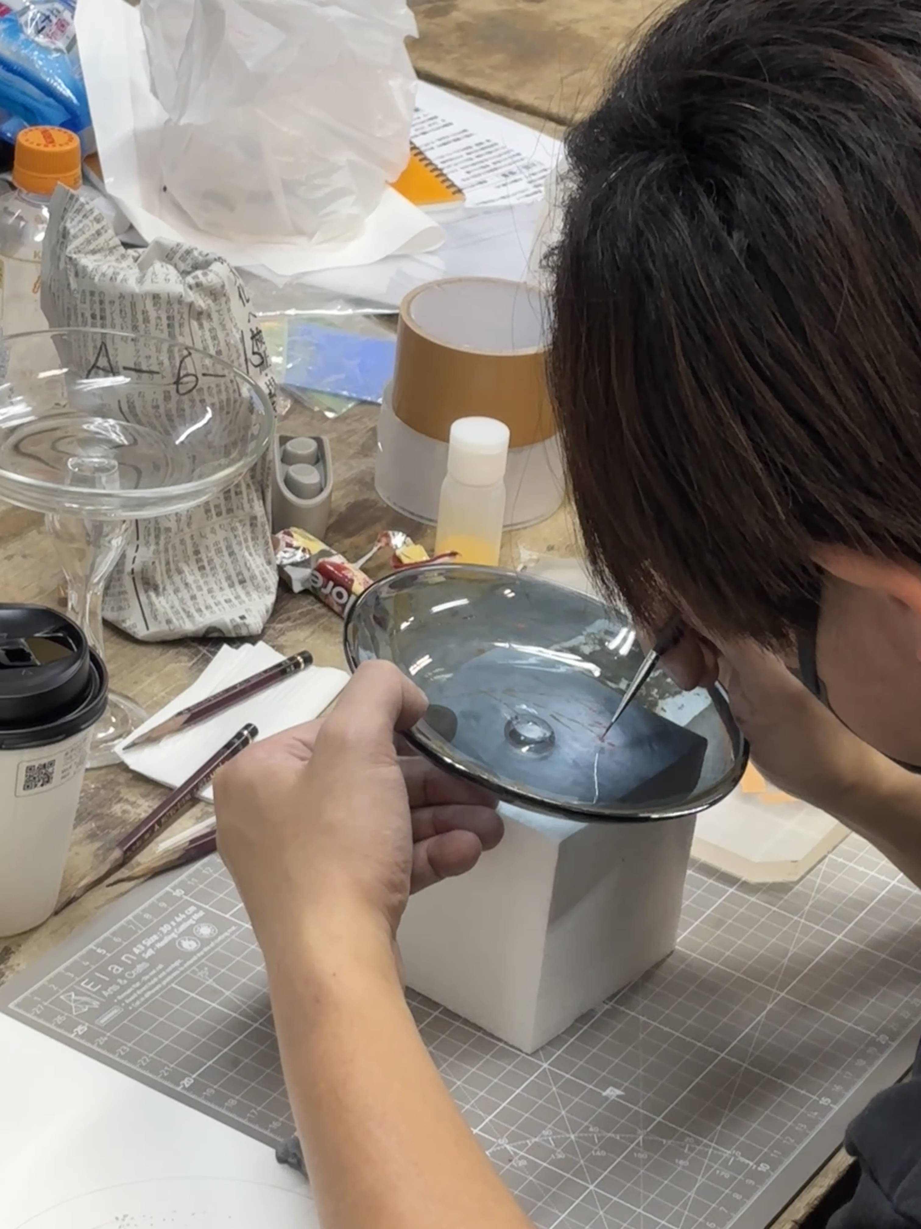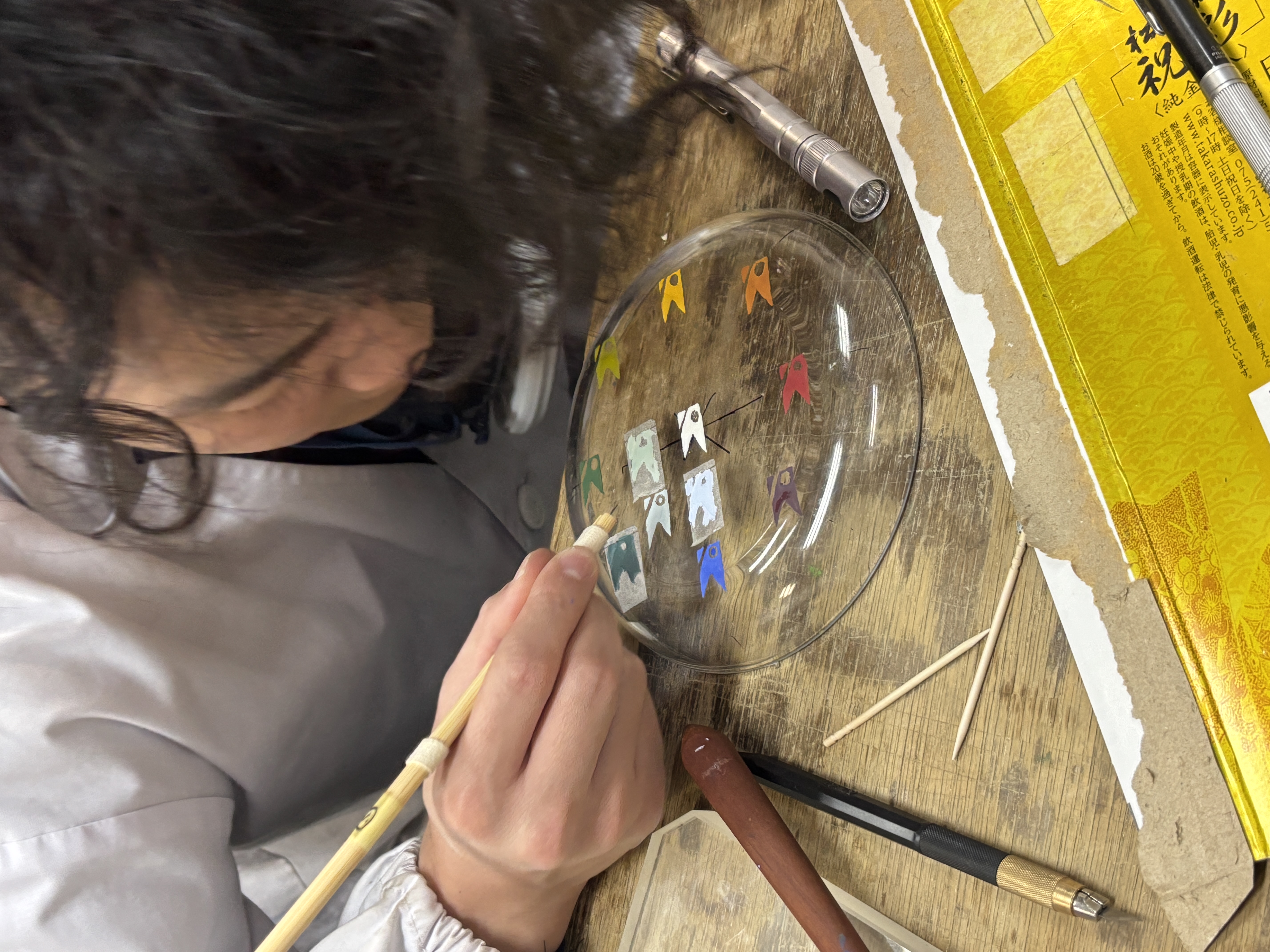 東京ガラス基礎科では約3週間のエナメル絵付け授業を実施