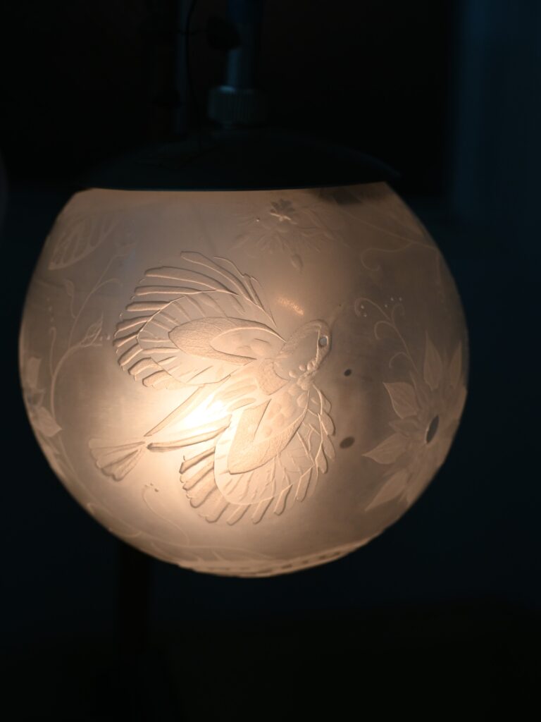 鳥や花をあしらたランプシェード(夜間基礎科1年生)