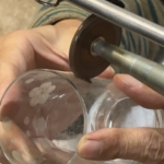 銅盤の斜め下からガラスを当てる