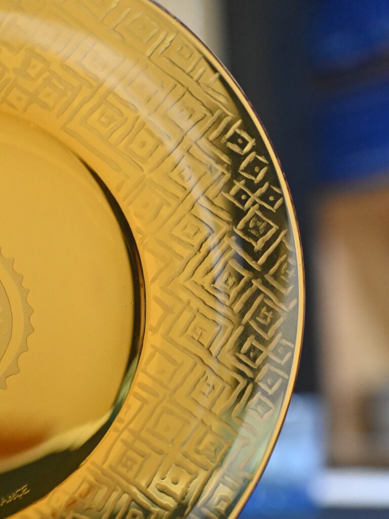 「グラヴィール」という言葉は彫刻一般を意味しますが、ガラス工芸においては回転する銅盤を使った彫刻技法を指します。