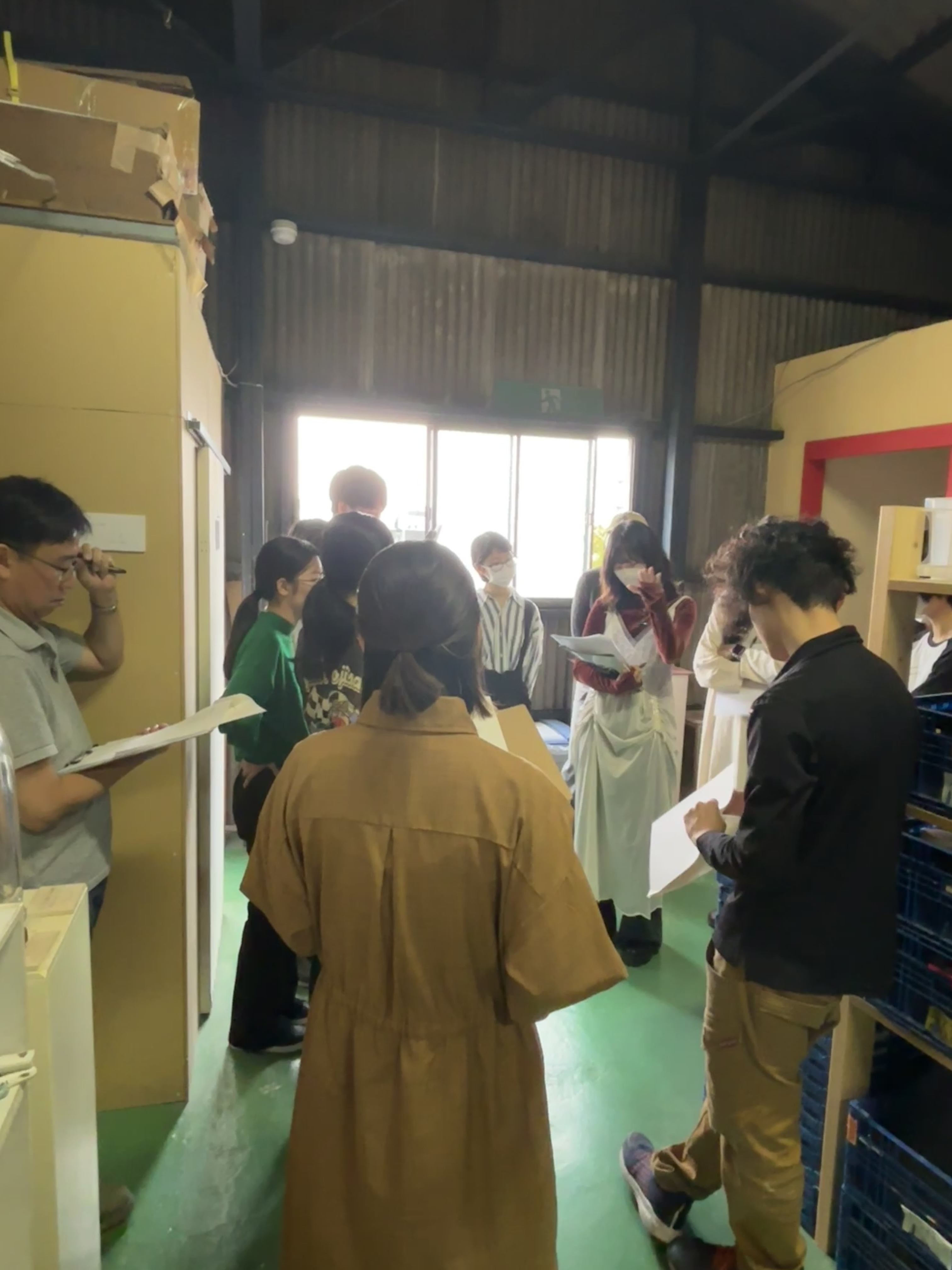 学生がそれぞれ選んだ場所で自分の作品に関する発表をし、他の学生からの質問や感想、そして先生からの講評を受けました。