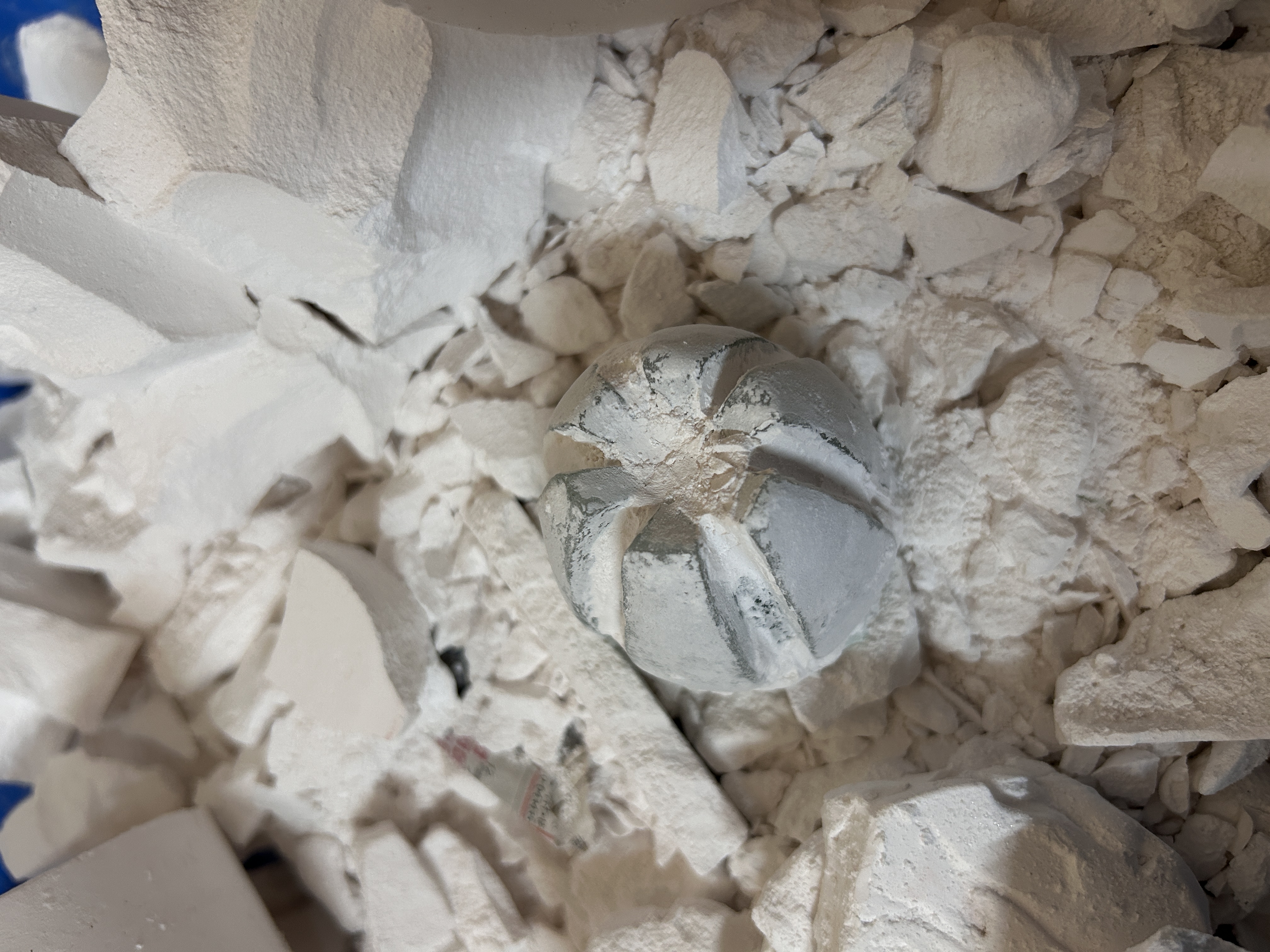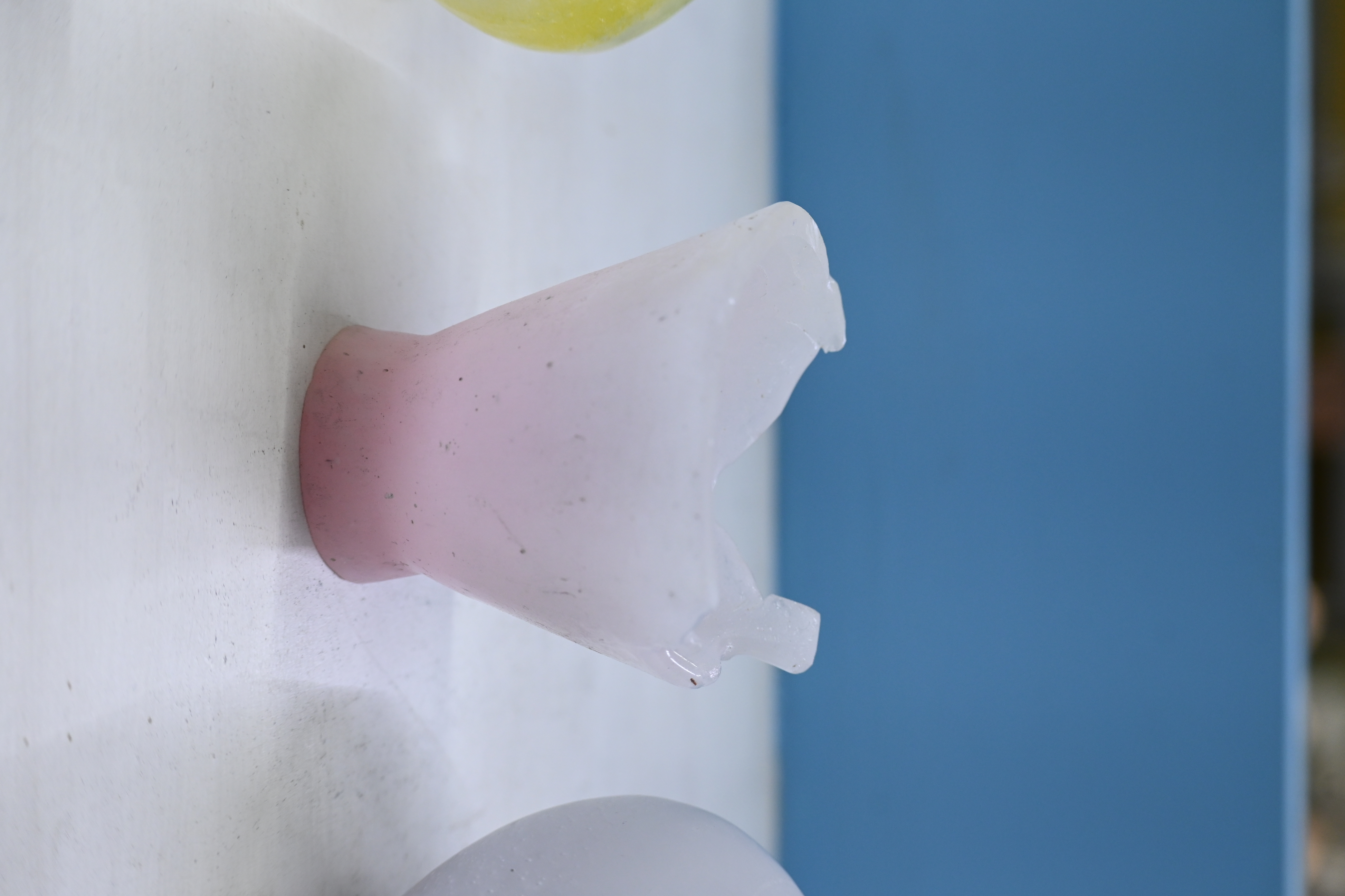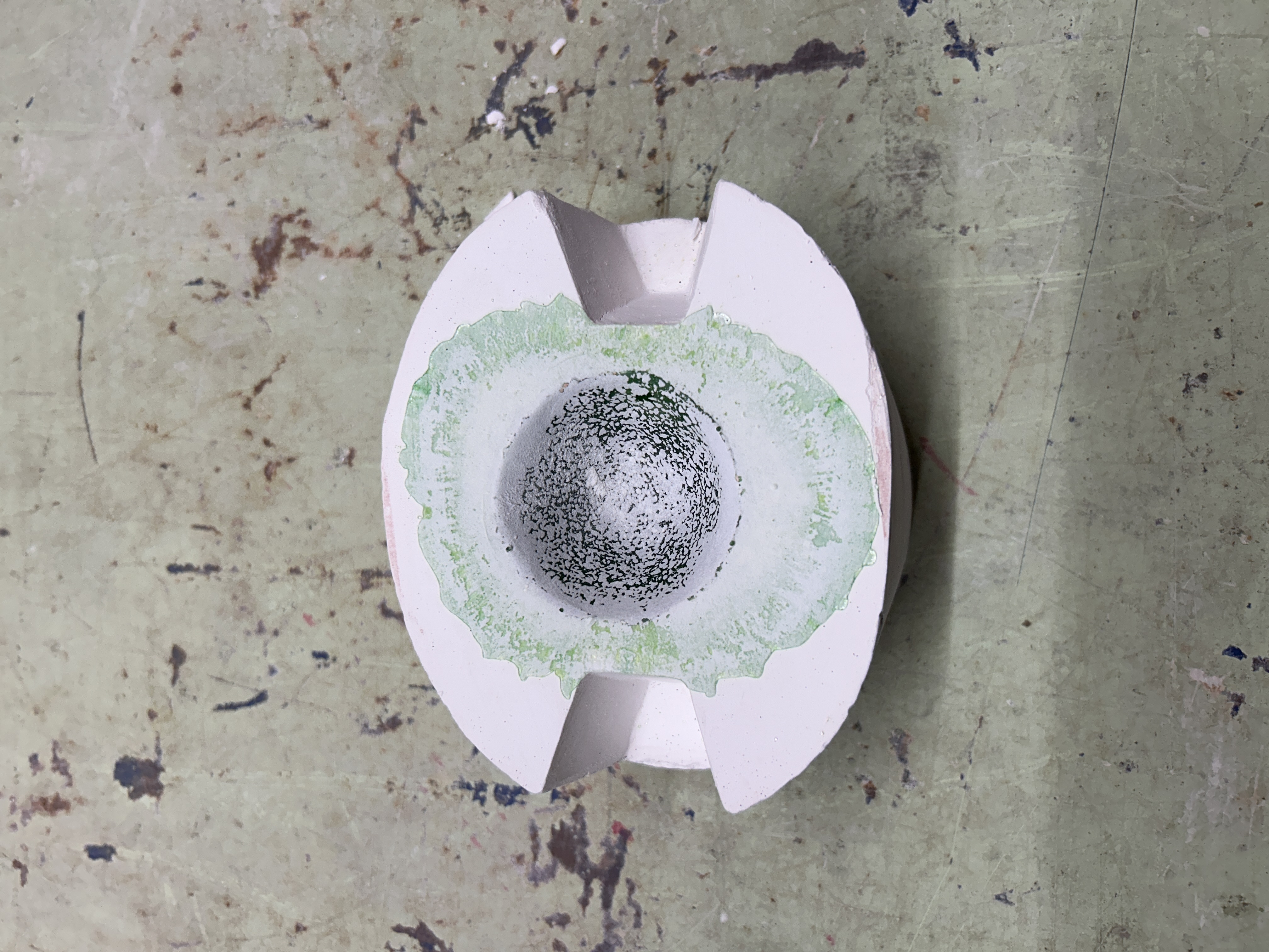 凹凸があるため、割り型という応用的な型で作成しました。型取りや焼成でいくつもの壁に当たりましたが、なんとかガラスになってよかったです。