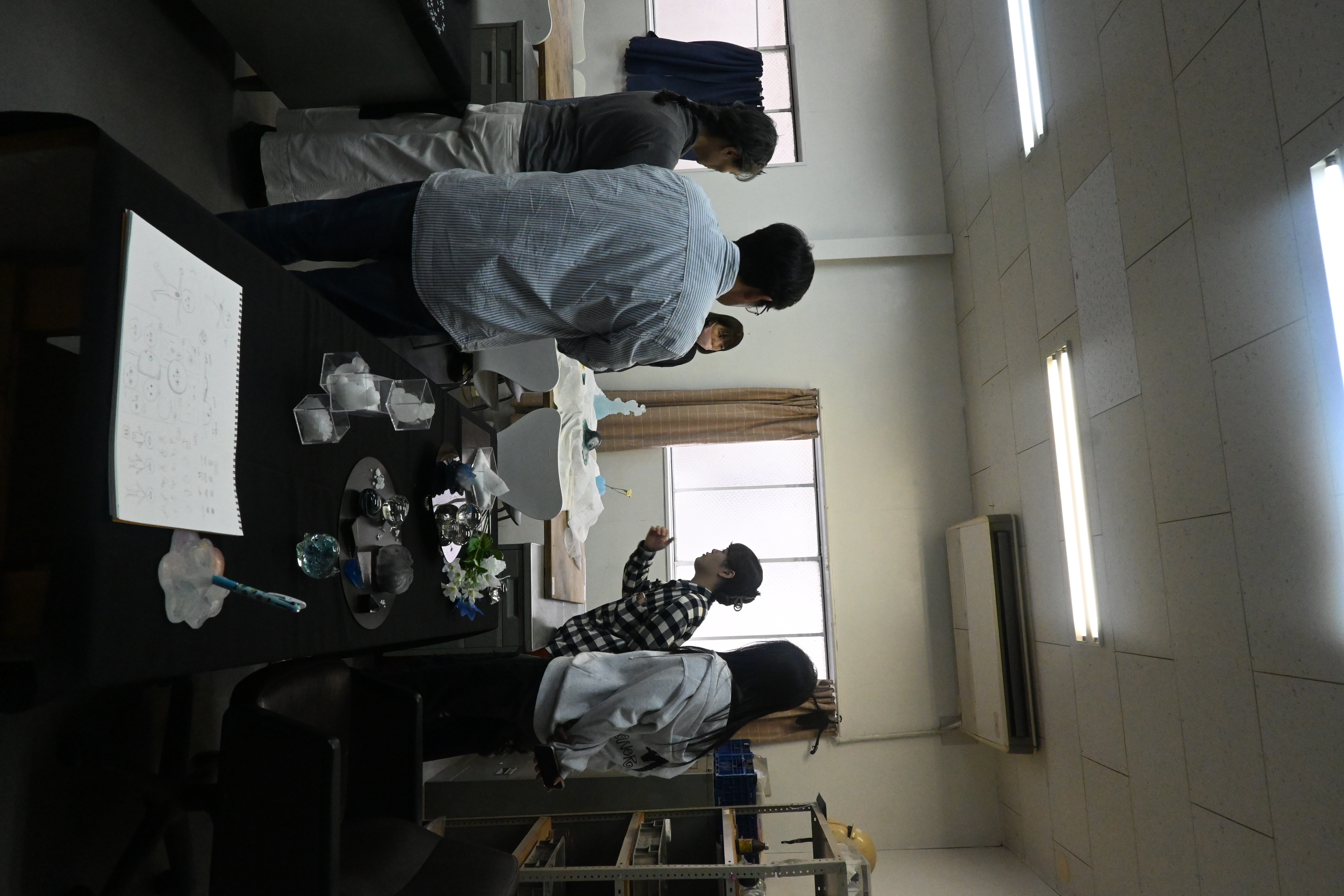 授業最終日は、今まで作ってきた作品をセルフプロデュースするというテーマで、展示と講評を行いました。