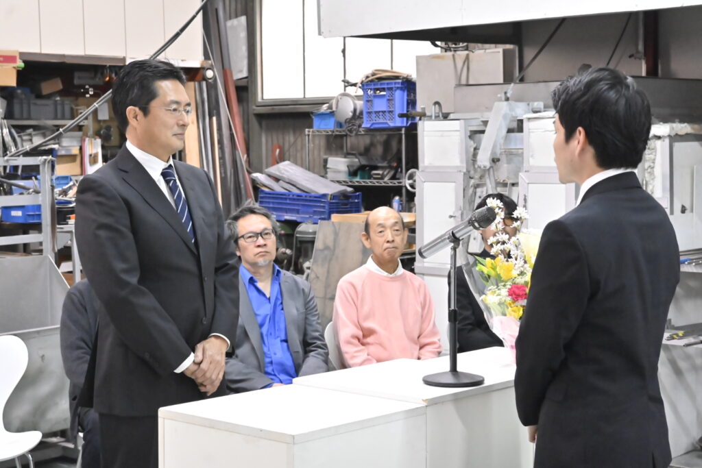 新入生代表挨拶。地元で切子をやっていきたいという思いを語っていただきました。