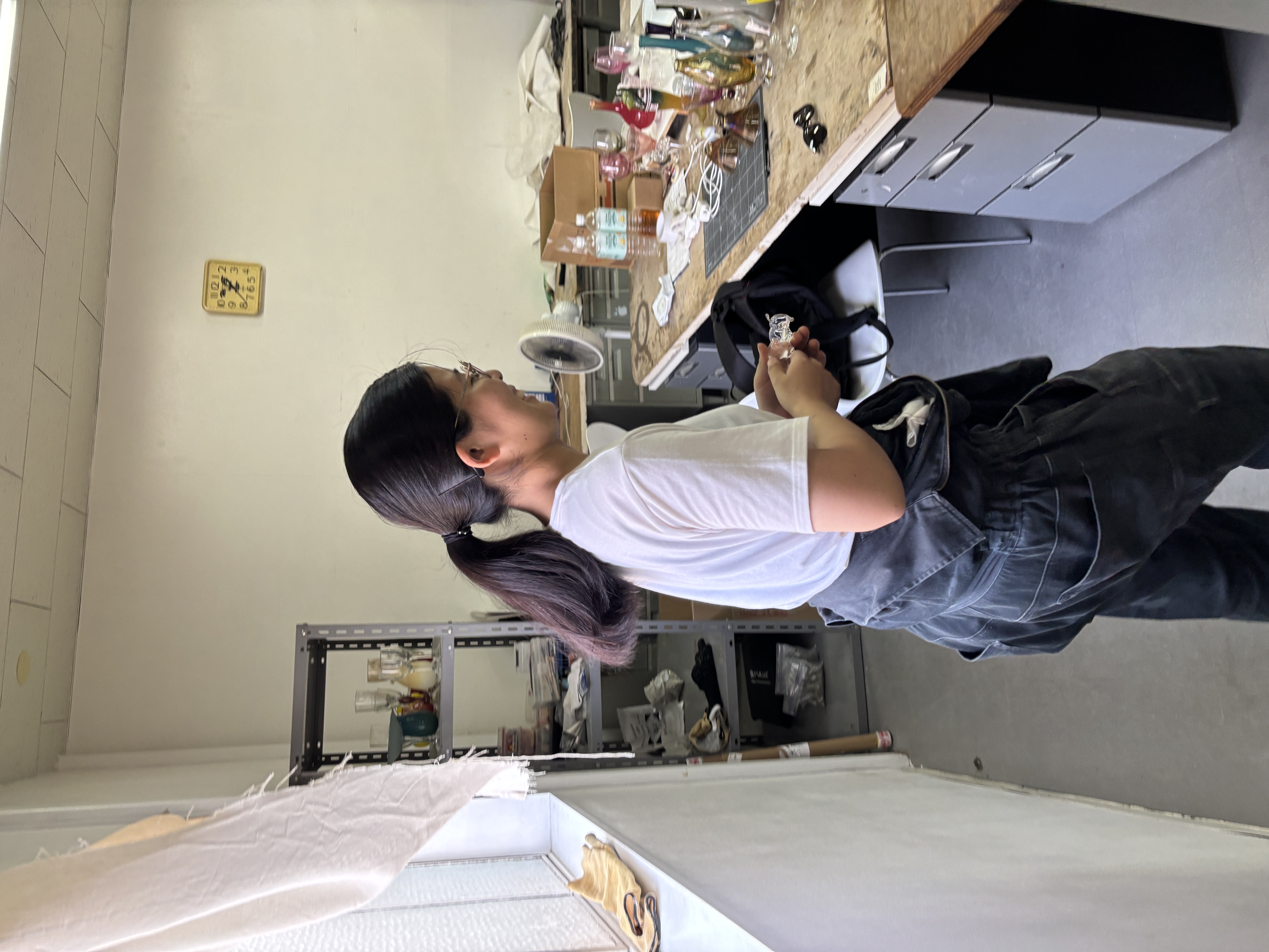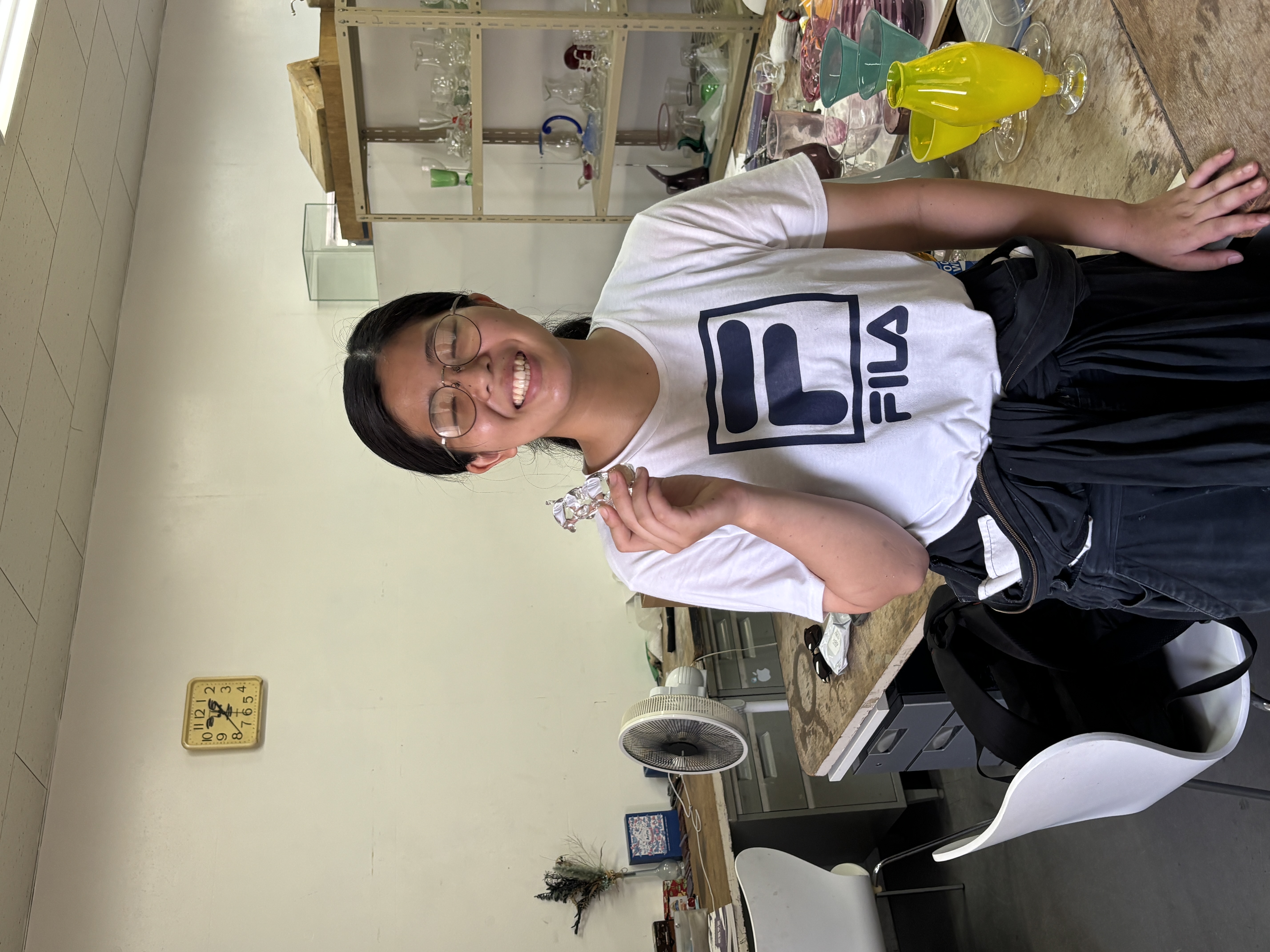 入学後1年間ガラスの全般的な知識と技術を学び、2年目となる今年は卒業制作に励んでいる。