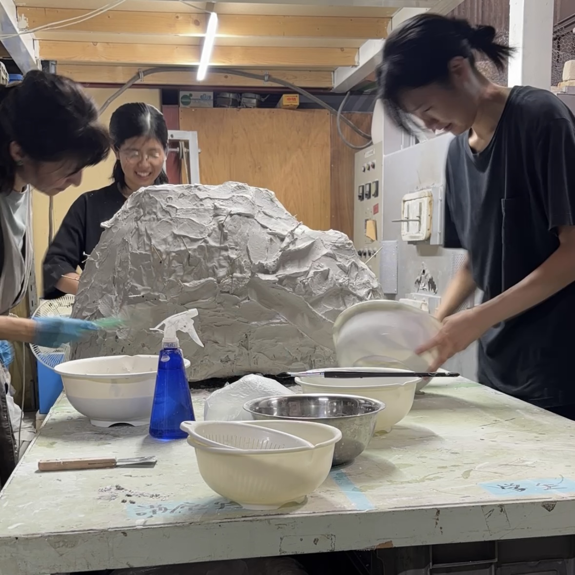石膏の量がボウル1杯で済まない場合、1人ですべての作業をこなすことはできないと考えていいでしょう…。協力者の存在がとても大事です!みんなで力を一つにして作り上げる喜びは、大きい作品を作ったことのある人にしかわからない快感かもしれません。
