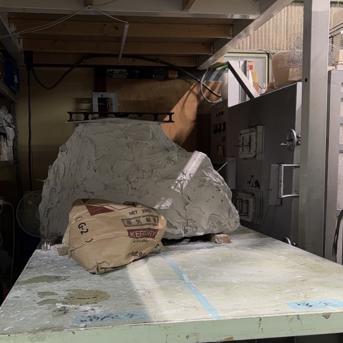 ▼次に塗る石膏を作るスタッフ
